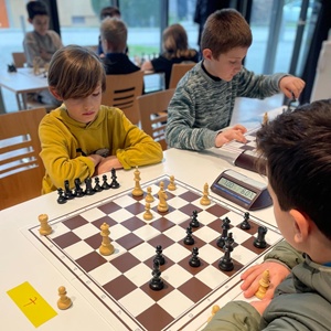 36 Kinder gingen am Sonntag, 15.3.2026 im Saal der Genossenschaft BSZ Schönau an den Start und viele der Neulinge zauberten dabei ihre ersten Turnierzüge auf das Brett oder bedienten gar zum ersten Mal eine Schachuhr. Die Stimmung war den ganzen Nachmittag positiv-aufgeregt und alle Teilnehmenden spielten äusserst fair. Hoher Besuch erlebte das Turnier durch die Person von Werner Hug, der mit seinem Enkel kiebitze. Dabei wurde er Zeuge eines studienhaften Patts. Überhaupt endeten viele Partien nach der Sonderregel „Dritter unmöglicher Zug verliert“. Schachlich drückten die Zwillinge Stefan und Andrei Serban vom SC Riesbach dem Turnier den Stempel auf und Stefan gelang das Kunststück, alle Partien für sich zu entscheiden. Der Réti-Schönau-Nachwuchs belegte die Plätze 11, 14, 15, 22, 24, 27, 28, 29, 30, 32, 33 und 35. Toll auch der Umstand, dass 5 junge Rétianerinnen an den Start gingen und den Jungs mit Bravour Paroli boten. Fazit: Ein gelungener Nachmittag mit grossem Erfahrungszuwachs und einigen spannenden Partien unter Gleichgesinnten.