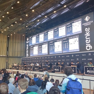 Unglaubliche 3500 Schachbegeisterte fanden sich über die Ostertage wieder im deutschen Karlsruhe ein. Das grenke Chess Festival, bestehend aus Open-Turnieren und "Freestyle-Open"-Turnieren (in denen Chess960 gespielt wird) in jeweils drei Kategorien, sprengte wieder einmal alle Superlativen. Wer selbst noch nie einem Turnier dieser Grösse teilgenommen hat, kriegt von folgendem Bild, das einen Ausschnitt des kleineren der beiden Spielsäle zeigt, einen Eindruck der Dimensionen dieses Megaevents...