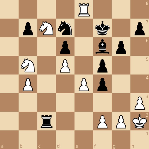 Am Brett 3 gelang mir, Christoph Campora, die erneute Führung. Glücklicherweise entstand eine Stellung, die Ben und ich bereits an der SEM stundenlang analysiert hatten. Mit präzisem Positionsspiel konnte ich den Druck stetig erhöhen, bis mein Gegner schliesslich einsehen musste, dass kein Halten mehr war.